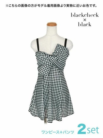 水着 ガーリー ギンガムチェック ワンピース バストリボン ビキニ