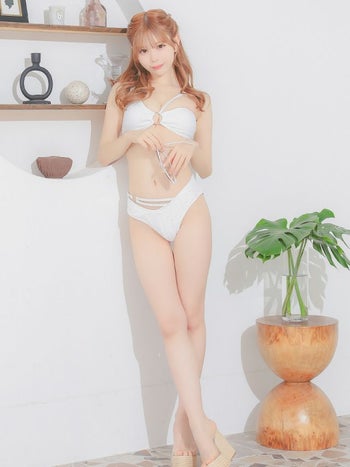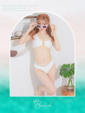 4. 【水着】アシメショルダー カットアウト バンドゥ ワッフル生地 ギャル ビキニ