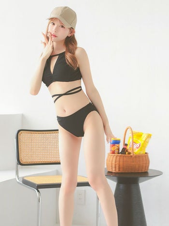 4. 【水着】クロスデザイン ホルターネック ワンカラー セクシー ギャル ビキニ