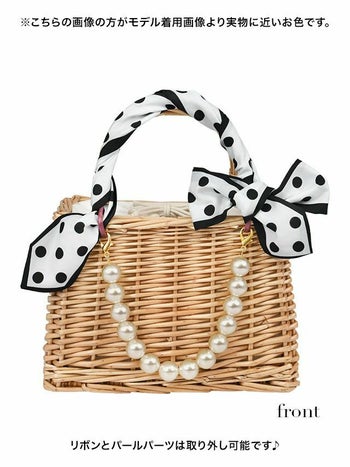 5. 【水着】小物 ガーリー ドットスカーフ パールチャーム付き かごバッグ