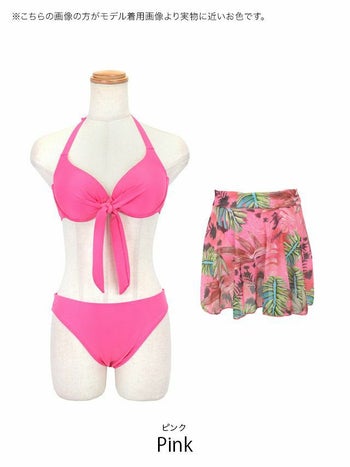 3. SALE【水着】2Way ホルターネック バストリボン ニュアンスボタニカル柄スカート ビキニ