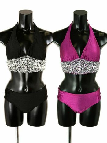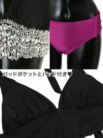 安くてセクシーSwimWear! 【水着】ビジュー装飾ホルターネックビキニセット