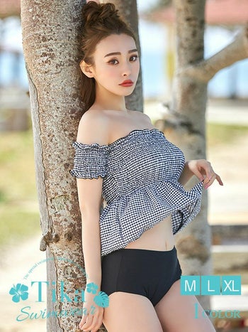 [LaLaTulle select][水着]モノトーンギンガムチェックチュニックビキニ(1color)(M/L/XL)