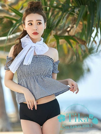 安くてセクシーSwimWear! 【水着】モノトーンギンガムチェックチュニックビキニ