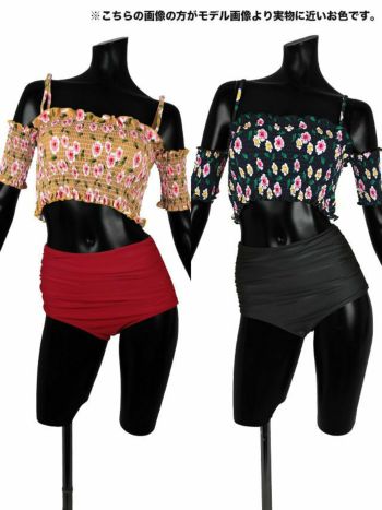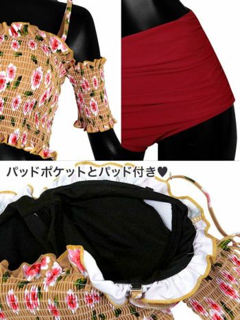 安くてセクシーSwimWear! 【水着】ボタニカル柄オフショルギャザービキニ