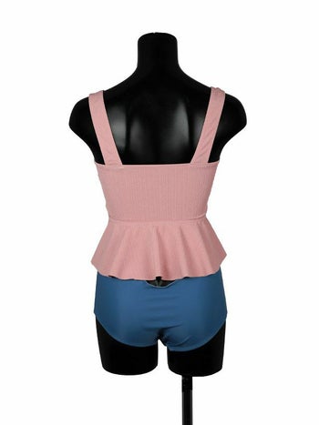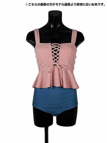 ピンク×ブルー [LaLaTulle select][水着]編み上げビスチェチュニックビキニ(1color)(M/L)