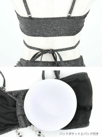 4. 【水着】ラメグリッター バンドゥホルターネック ビジュー フリル ビキニ