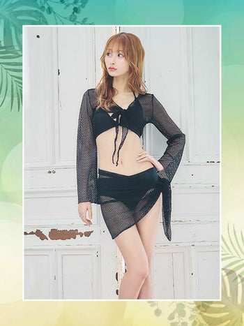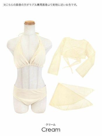 セクシーな肌透け感♪ 【水着】2Way メッシュガウン パレオ付き ホルターネックビキニ