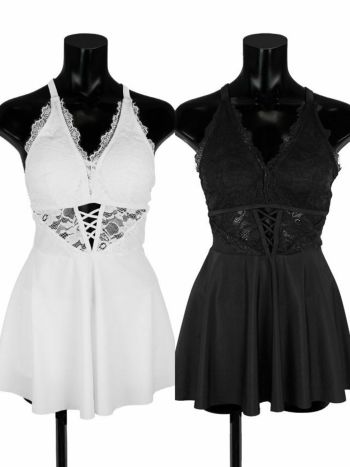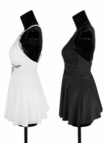 ホワイト/ブラック [LaLaTulle select][水着]ラグジュアリーレースフレアワンピースタンキニ (2colors) (M/L/XL) [LaLaTulle select][水着]ラグジュアリーレースフレアワンピースタンキニ (2colors) (M/L/XL)