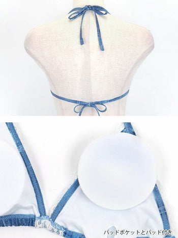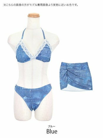 4. 【水着】デニム 三角ホルターネック レース スカート付き ビキニ