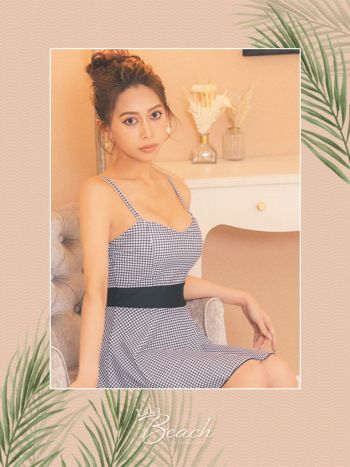 ガーリーチェック ウエストマーク ワンピースビキニ