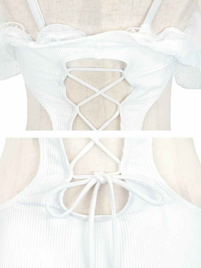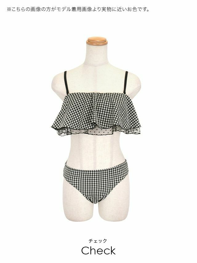 4. 【水着】ラブリー ドットレース バストフリル バックレースアップ チェック柄 モノキニ ビキニ