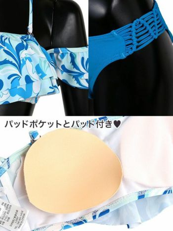 安くてセクシーSwimWear! 【水着】花柄フリルオフショルビキニ