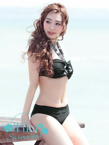 安くてセクシーSwimWear! 【水着】編み上げホルターデザインビキニ+メンズ水着セット