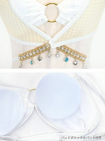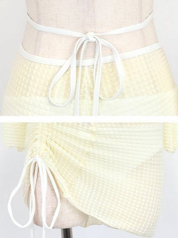 クロスされたビジューが可愛すぎる♪ 【水着】2way クロスキラキラビジュー ショート丈カーディガン ドロストミニスカート ビキニ