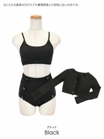 4. 【水着】2Way ガウン付き ダブルボタン チェック柄 ハイウエストビキニ