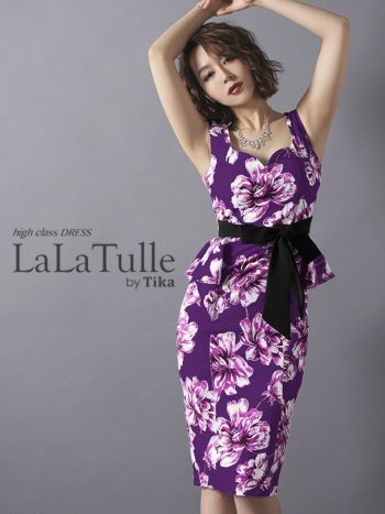 キャバドレス LaLatulle ララチュール フラワープリントミディドレス(2color)(S/M/L)(青田夏奈 着用)【送料無料】