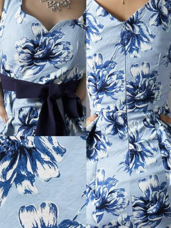 4. フラワープリント ノースリーブ タイトひざ丈ドレス[1color][青田夏奈/キャバドレス着用]
