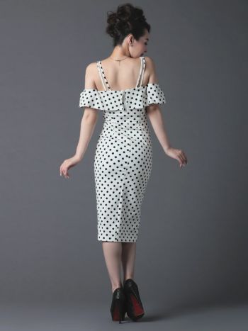 肩のラインを綺麗に見せてくれるオフショルダーは二の腕もカバーしてくれます。