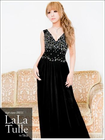 ゴージャス ビジュートップ プリーツ フレアロングドレス[5color][青田夏奈/キャバドレス着用]