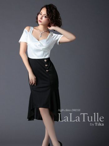 LaLatulle ララチュール オフショル×マーメイドラインバイカラーミニドレス (ホワイト×ブラック) (S/M/L/XL)