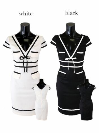 [韓国ドレス]モノトーンテープデザイン タイトミニドレス[2color][Lあり][青田夏奈/キャバドレス着用]