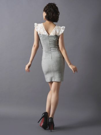 3. [韓国ドレス]レース切替サマー ツイード タイトミニドレス[1color][Lあり][青田夏奈/キャバドレス着用]