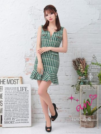 キャバドレス フレアミニドレス an アン ノースリーブ ツイード チェーン ジップデザイン チェック柄 飾りポケット スパンコール