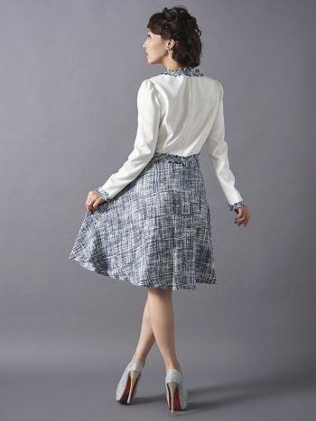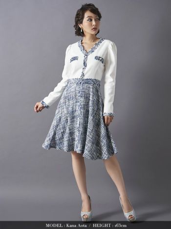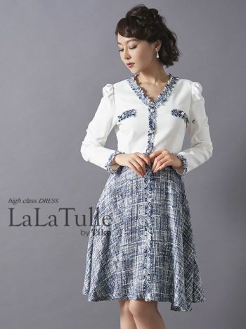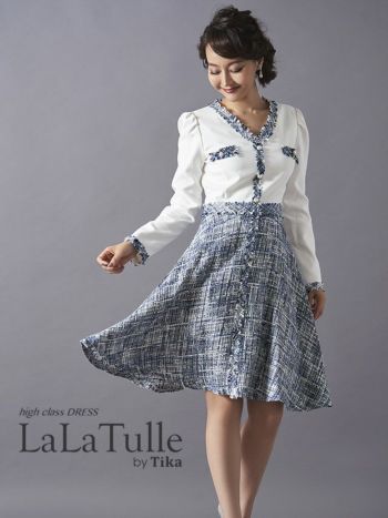5. [韓国ドレス][LaLaTulle]ツイードMIX 袖あり フレアひざ丈ドレス[2color][Lあり][青田夏奈/キャバドレス着用]