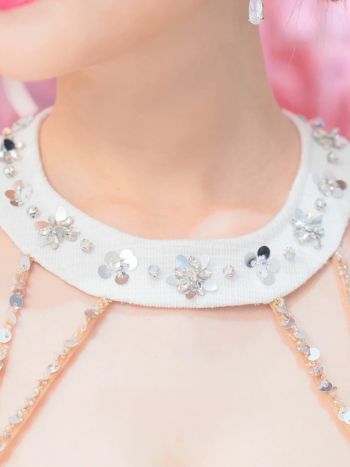 3. 【PURESS/ピュアレス】ガーリー ホルターネック オープンバスト スパンコール ツイード セットアップ フレアミニドレス (PS802417)