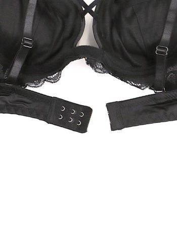 勝負下着 チャーム付き ケミカルレース クロスコード カップ ブラジャー&ショーツ 3点セット