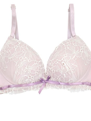 5. 【勝負下着】フラワー刺繍 ホワイトレース フェミニン ブラジャー&ショーツ 2点セット