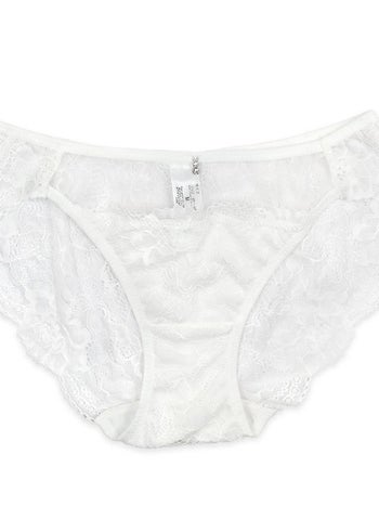4. 【勝負下着】ホワイト 総レース チャーム付き カップ ブラジャー&ショーツ 2点セット