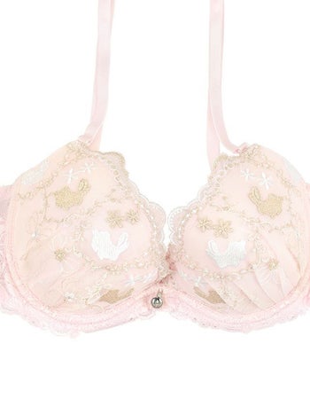 キュートなバニー刺繍デザイン♪ 【勝負下着】バニー 刺繍 レース チャーム付き カップ ブラジャー&ショーツ 2点セット