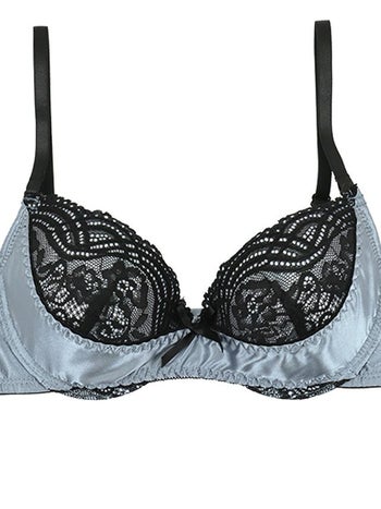 勝負下着 ブラックレース サテン リボン バイカラー レース カップ ブラジャー&ショーツ 2点セット