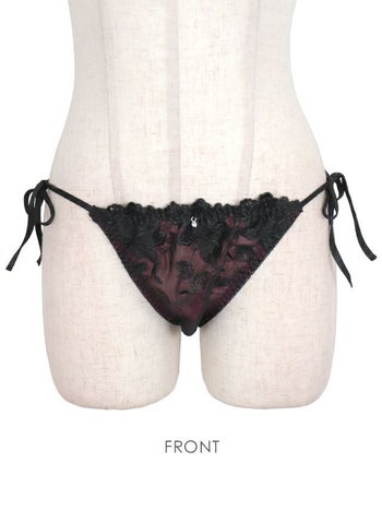 3. SALE ブラックレース ビジューチャーム サイドリボン Tバックショーツ 単品