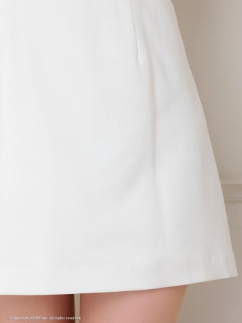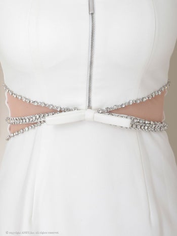 くびれ透け スクエアネック リボン バストジップ ビジュー 袖あり フレアミニドレスのメイン画像3