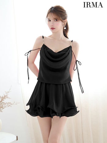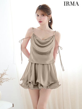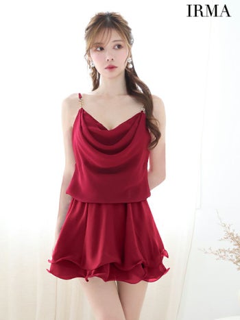 キャバドレス IRMA イルマ リボン ドレープ カットオフ ワンカラー キャミソール フレアミニドレス