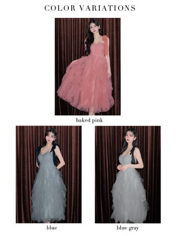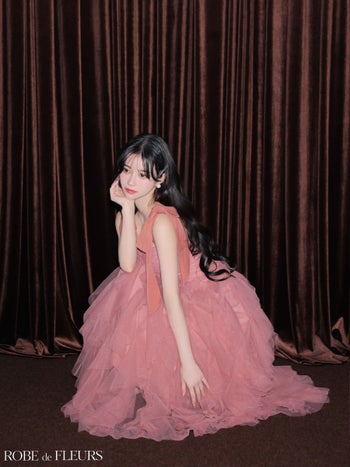 4. 予約商品【2月下旬入荷予定】【ROBEdeFLEURS/ローブドフルール】ボリューム リボンショルダー ノースリーブ チュール Aラインロングドレス (fm3463)