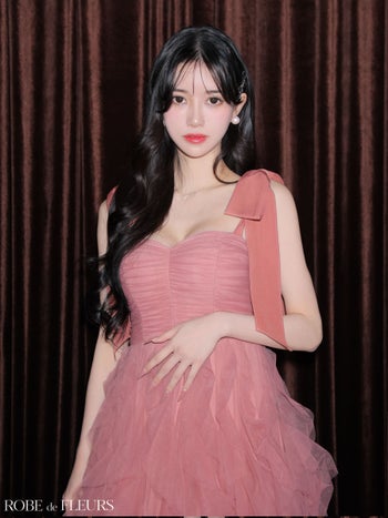 キャバドレス ROBEdeFLEURS ローブドフルール ボリューム リボンショルダー チュール ノースリーブ Aラインロングドレス