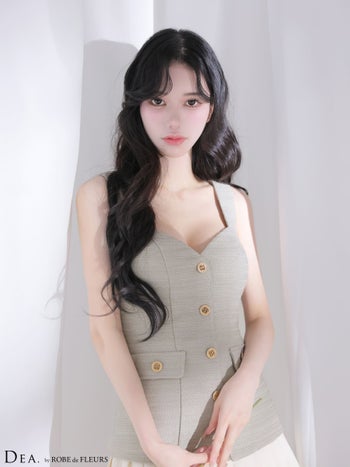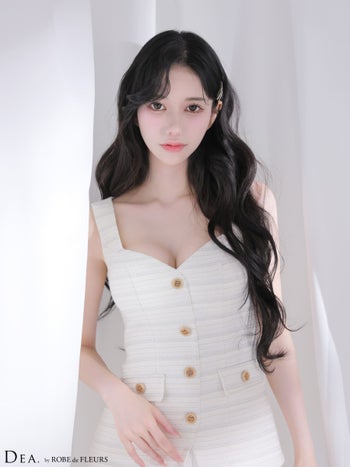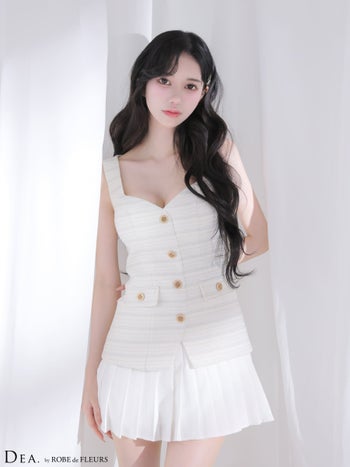 キャバドレス DEA.by ROBE de FLEURS ディア ツイード プリーツ ノースリーブ ボタン ボーダー柄 フレアミニドレス