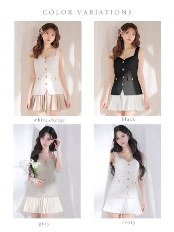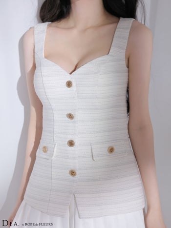 3. 予約商品【5月中旬入荷予定】【DEA.by ROBE de FLEURS/ディア】ツイード プリーツ ノースリーブ ボタン ボーダー柄 フレアミニドレス (DE4656)