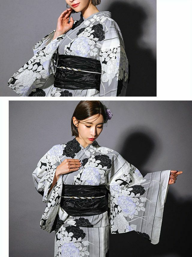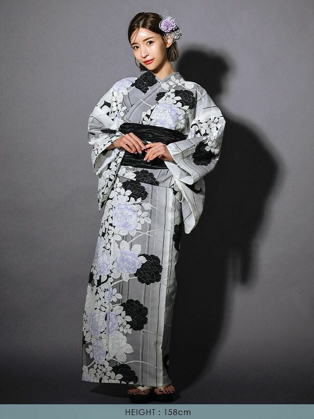 他の画像を見る 個性的で気品溢れる粋浴衣☆ 【浴衣】グレーグラデーション地 モノトーンローズフラワー 細縞 ゆかた3点 [浴衣+兵児帯+下駄] 即日発送 ¥ 12,100 税込 カートに入れる お気に入りに登録する