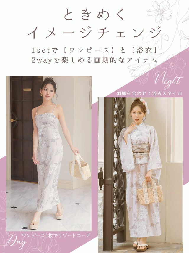 他の画像を見る ワンピース単品としても着ることができる♪ 【ワンピース浴衣】2way ピンク地 線画フラワー 3点SET [浴衣羽織+ワンピース+兵児帯] 即日発送 ¥ 10,780 税込 カートに入れる お気に入りに登録する