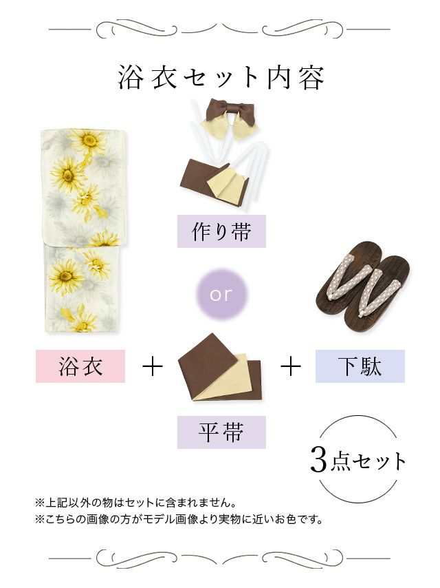帯が選べる浴衣セットもあるので、平帯が苦手な方でも作り帯で