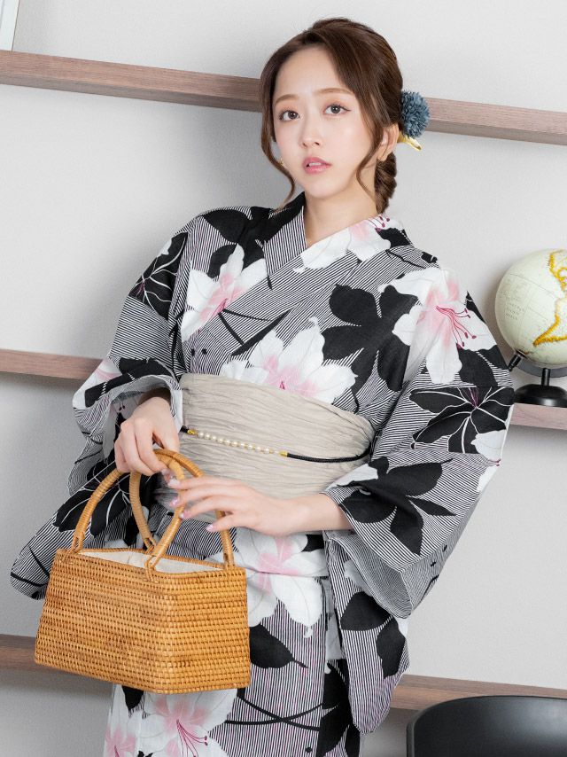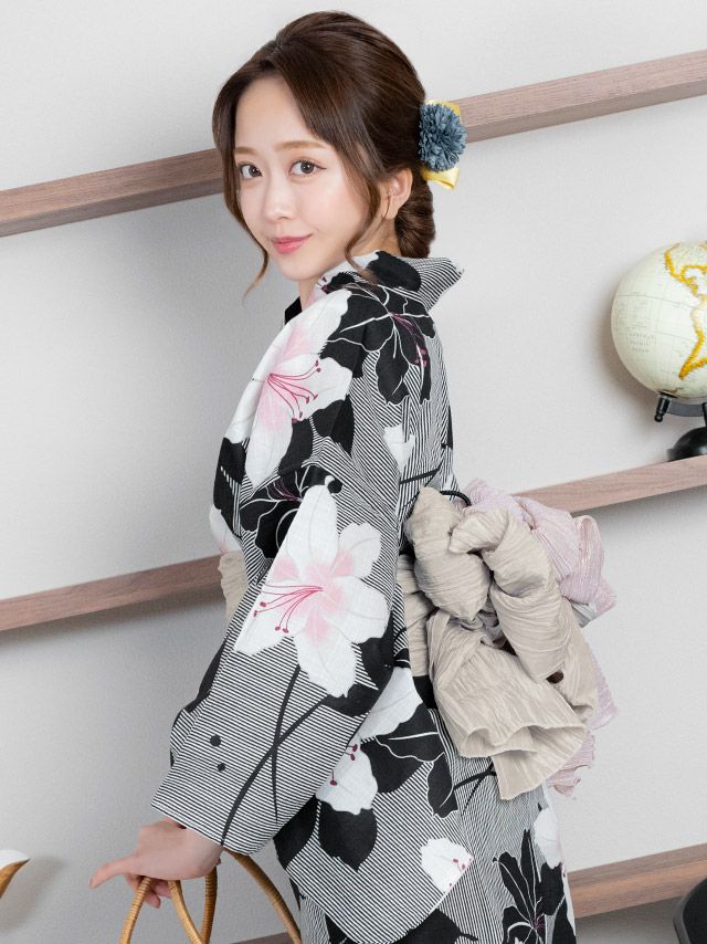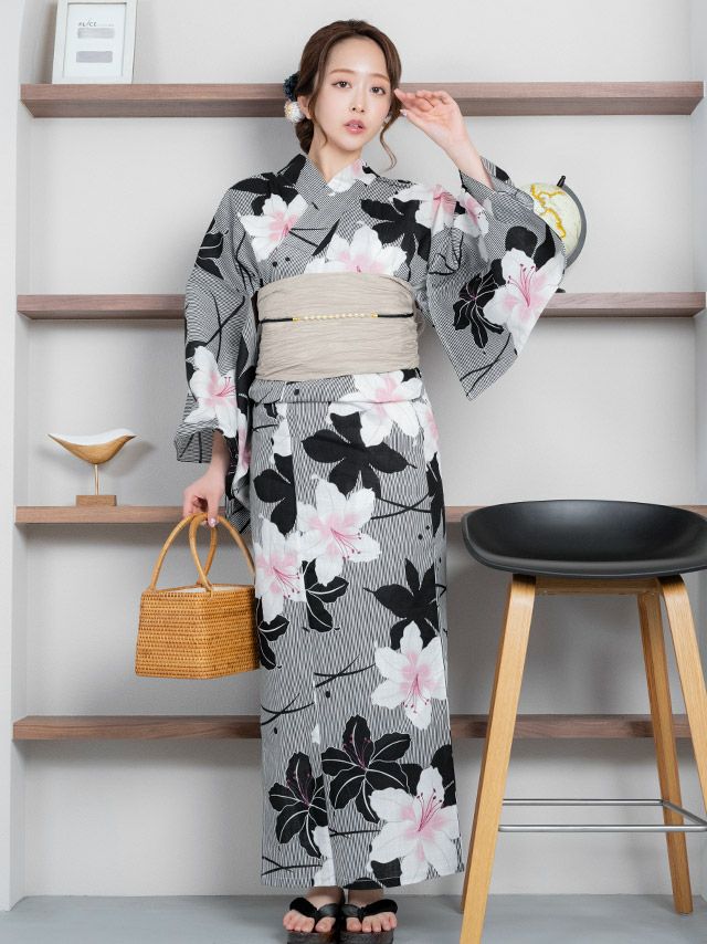 他の画像を見る 2025新作☆存在感を引き立てる♡ 【浴衣】黒地 ストライプ モノトーン 百合 レトロ ゆかた2点SET [浴衣+兵児帯] 即日発送 ¥ 10,780 税込 カートに入れる お気に入りに登録する