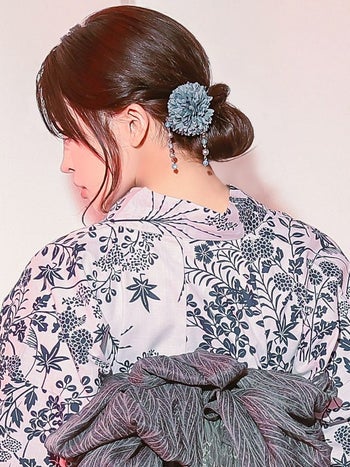 揺れるビジューが麗しい♡ 【浴衣】髪飾り ポンポンマム 垂れ飾り ビジュー ヘアアクセサリー 3点セットSET(ダスティピンク/パープル/ミントグレー/スモークブルー)