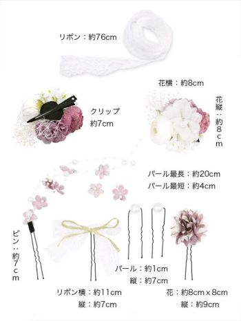 [髪飾り]くすみカラーフラワー×レースリボンヘアアクセサリー 11点セットのディテール画像1 [髪飾り]くすみカラーフラワー×レースリボンヘアアクセサリー 11点セットのディテール画像2