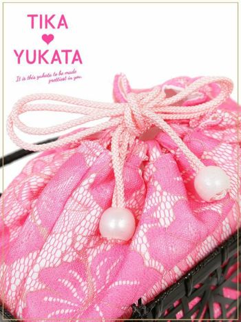 3. 【浴衣】小物 椿レース巾着 カゴ巾着