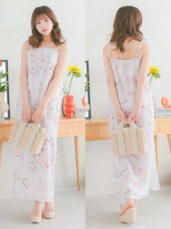 4. 【ワンピース浴衣】ピンク地 ニュアンス 花柄 ガーリー ゆかた3点SET [浴衣羽織+ワンピース+兵児帯]